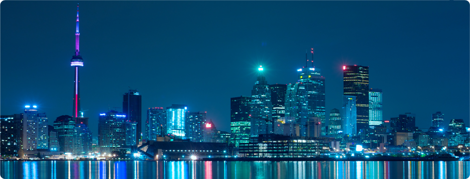 | Night scene of Toronto viewed from Centre Island in Lake Ontario. The tower is famous world tallest C(anadian)N(ational) Tower. The view from the Look Out Level of the tower toward Lake Ontario is spectacular and fantastic. In Summer there occur sometimes quite many thunderbolts over Greater Toronto Area, so the tower also actually has the fuction of physical protection to the heart of Toronto. Almost all the water of Lake Ontario is from Niagara Falls and it has natural beatiful color which is due to rich in planktons. |